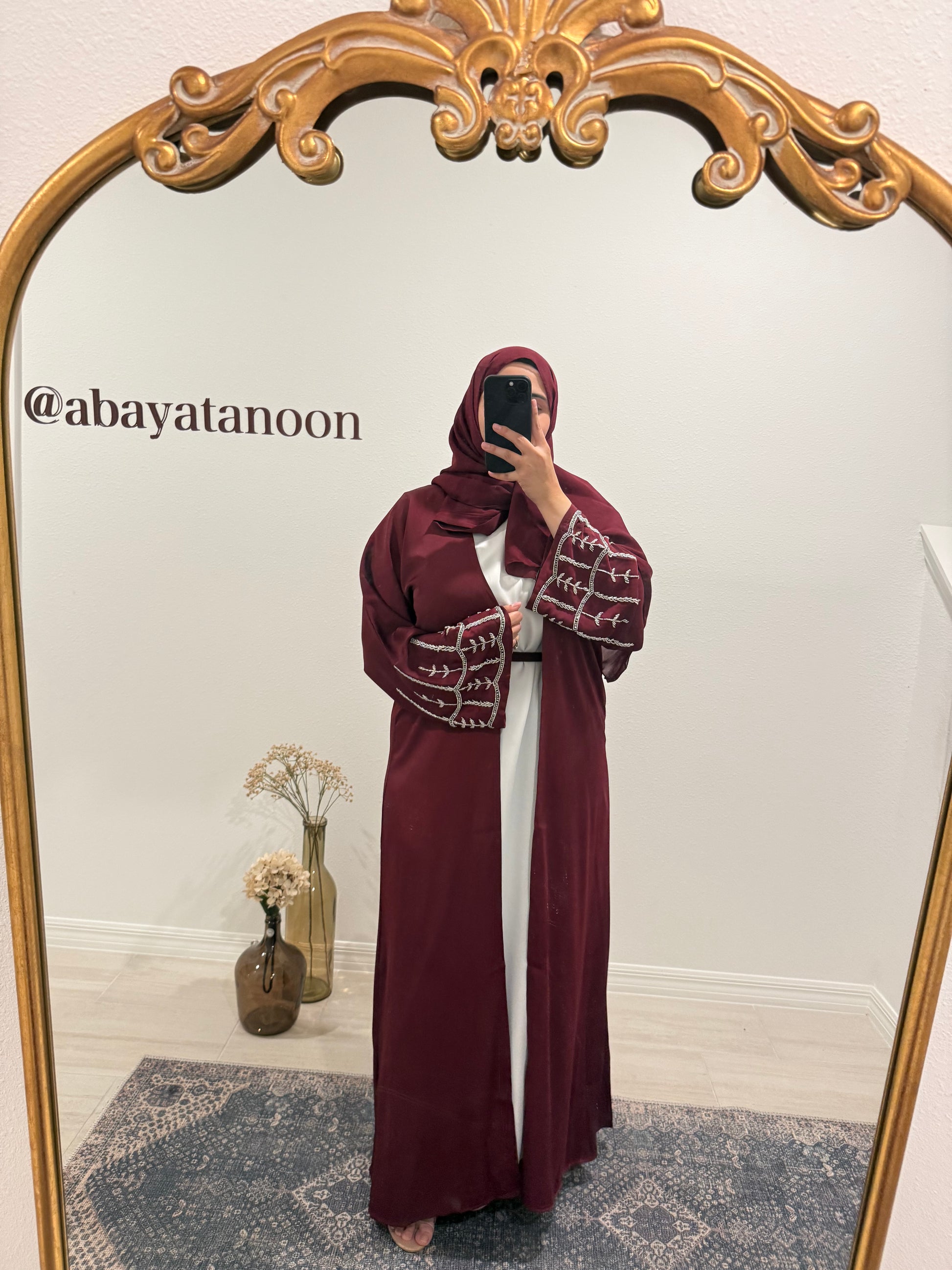 Burgundy Satin Abaya.
